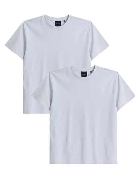 Jasnoniebieski T-shirt męski x2 z efektem brzoskwini 100% bawełna Atlantic – maksymalna wygoda.