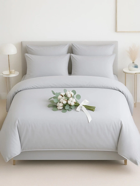 Biało-szara atłasowa pościel 120 g/m² Model AT002 Spod Igły i Nitki – komfortowy sen