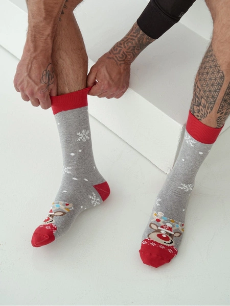Czerwone bawełniane skarpety męskie 75% świąteczne 1290 Milena – codzienna wygoda