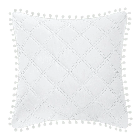 Biała poszewka dekoracyjna z pomponami POMPOO Spod Igły i Nitki – upiększenie sypialni