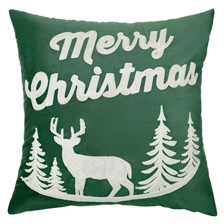 Zielona efektowna poszewka dekoracyjna 100% poliester Śnieżka Spod Igły i Nitki – świąteczny klimat.