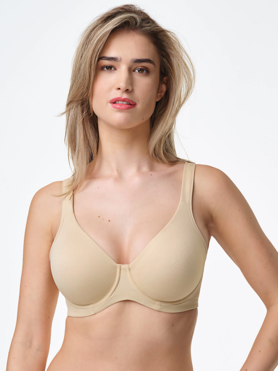 Wykonany z wysokogatunkowej mikrofibry, biustonosz zapewnia niezrównaną miękkość i delikatność, które sprawiają, że noszenie go to prawdziwa przyjemność. Miseczki z podwójnej warstwy materiału oraz 3-częściowa konstrukcja gwarantują doskonałe wsparcie i pięknie modelują biust. Boczne wzmocnienia dodatkowo zwiększają stabilność, zapewniając Ci pewność siebie przez cały dzień.