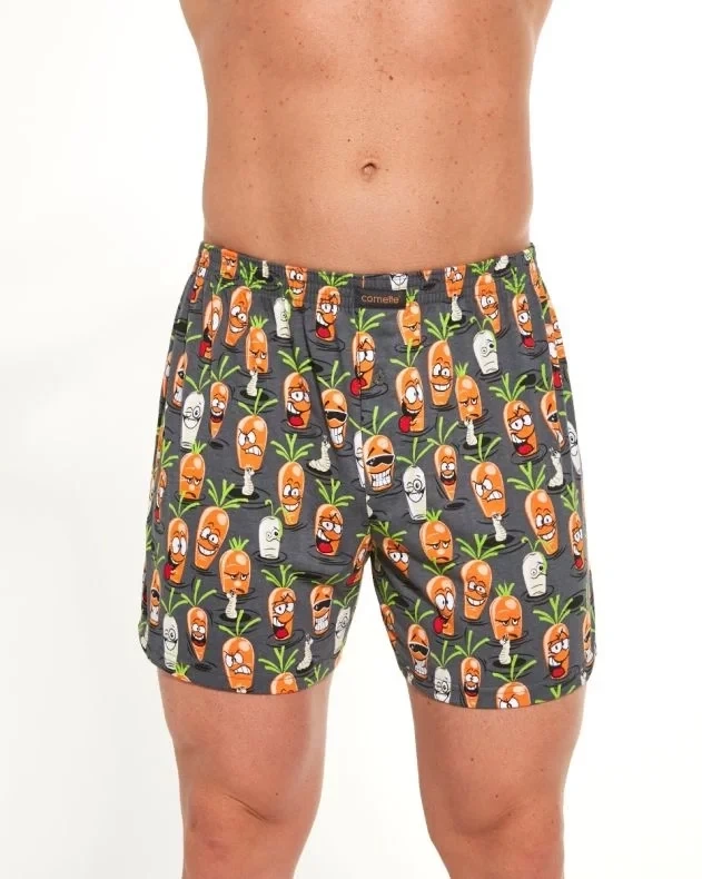 Luźne bokserki męskie ze ekstrawaganckim wzorem zostały wykonane z wysokogatunkowej miękkiej i przyjemnej w dotyku bawełny. Pełną swobodę ruchów zapewnia luźny krój oraz zastosowany materiał. Naturalna dzianina jest niezwykle delikatna dla skórymiła w dotyku, pozwala skórze swobodnie oddychać. Wygodna szeroka guma w pasie jest obszyta miękkim materiałem. Luźne bokserki są idealną propozycją dla mężczyzn ceniących sobie komfortową bieliznę i niebanalne wzornictwo.