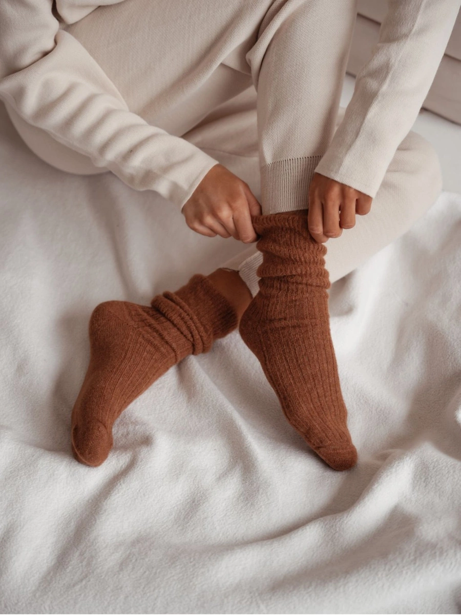 Brązowe długie skarpety damskie wełniane 50% alpaka Sestimi – wysoka jakość i wygoda