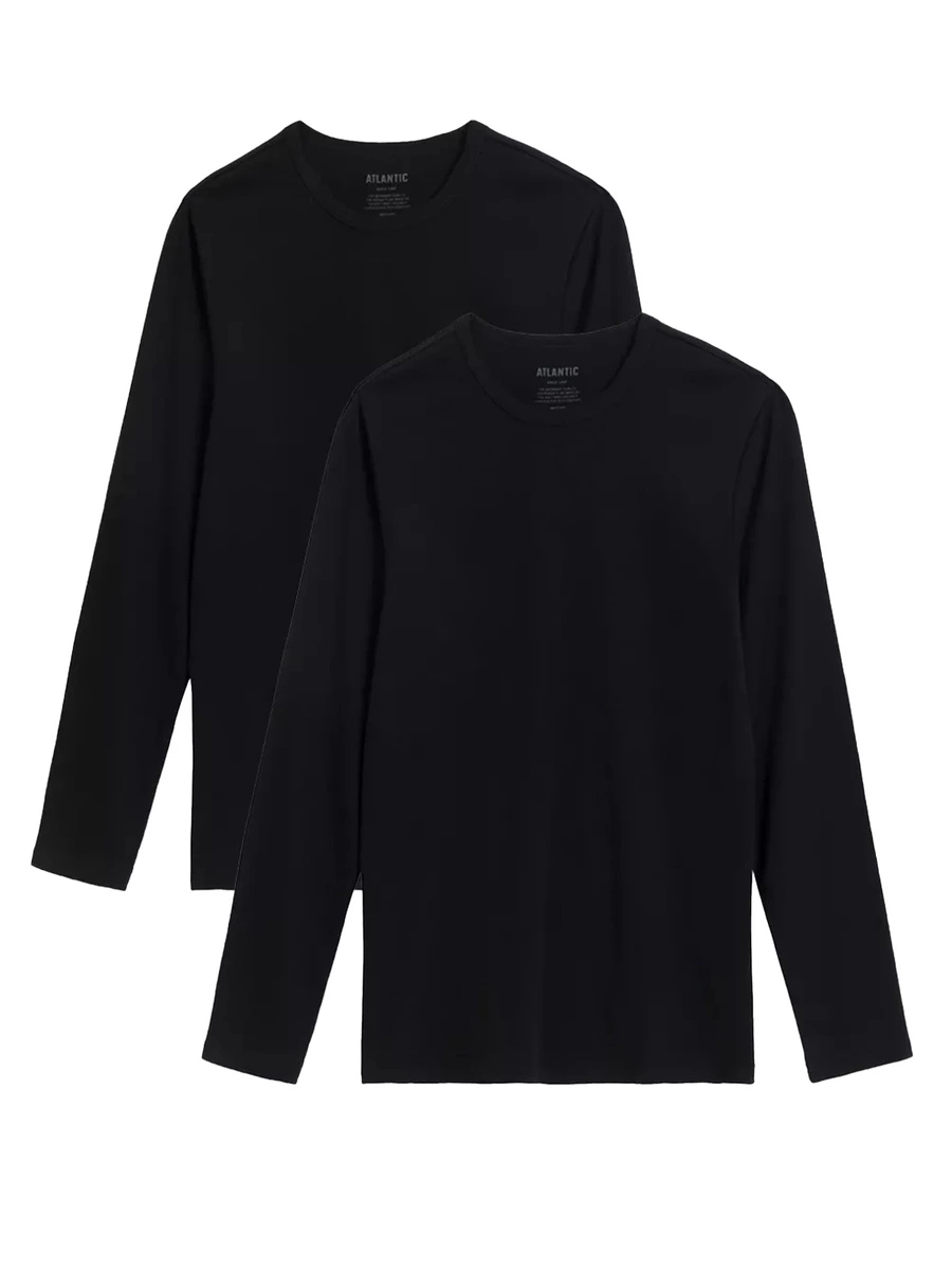 Czarna koszulka męska z długim rękawem 2pak 100% bawełna Atlantic – komfort na co dzień