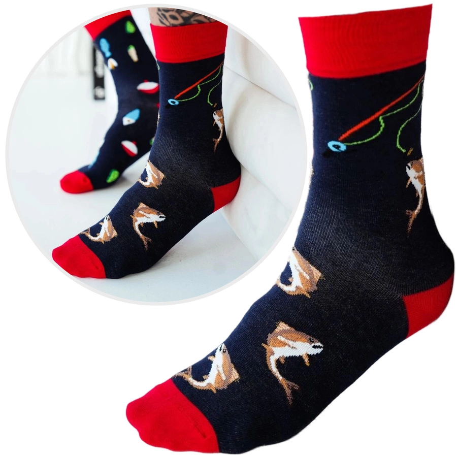 Czarne skarpety męskie wzorowane Wędkarstwo 75% bawełna 0125 Milena – codzienna wygoda