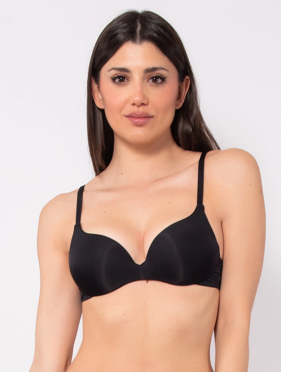 Czarny push-up biustonosz damski 1368 z mikrofibry Sielei – niewidoczne fiszbiny i komfort.
