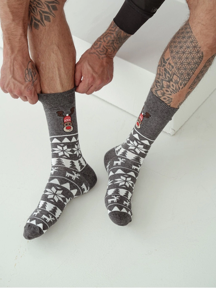 Czerwone bawełniane skarpety męskie 75% świąteczne 1290 Milena – codzienna wygoda