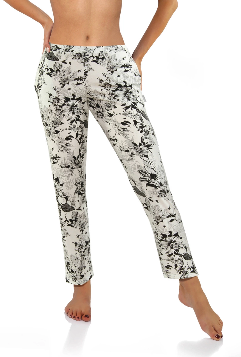 Długie spodnie piżamowe damskie w kwiaty 100% bawełna Sesto Senso – komfort na co dzień