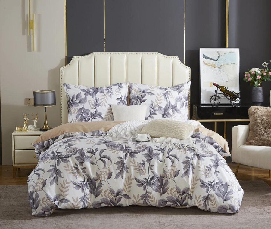 - Design: Nowoczesny wzór w odcieniu ecru z szaro-beżowymi liśćmi