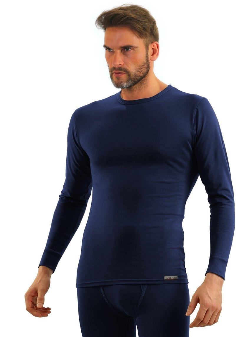 Granatowy elastyczny podkoszulek męski z bawełny 123 Sesto Senso – komfort na chłodne dni