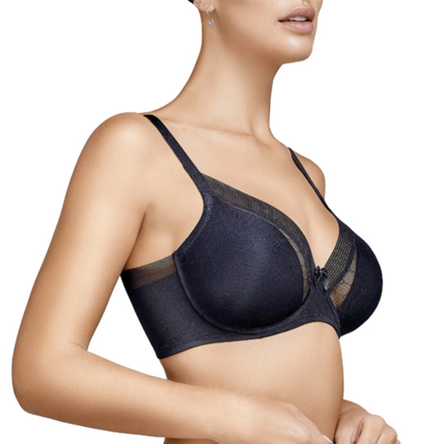 Biustonosz Katia to połączenie wysokogatunkowych materiałów, które zapewniają nie tylko trwałość, ale także komfort noszenia przez cały dzień. Miseczki z pełnym pokryciem oraz dekolt w kształcie litery V subtelnie podkreślają kobiece kształty, jednocześnie oferując doskonałe podtrzymanie. Geometryczny wzór dodaje nuty nowoczesności, a delikatny tiul to synonim subtelnej elegancji.