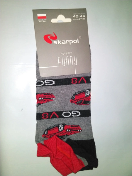 Kolorowe skarpety stopki polskiego producenta firmy Skarpol. Skarpety z kolekcji Funny są idealne dla mężczyzn, ale również dla kobiet i młodzieży. Wyprodukowane z wysokiej jakości bawełny. Skarpety mają nieuciskający ściągacz i płaski szew co zapewniają wygodę i komfort użytkowania.