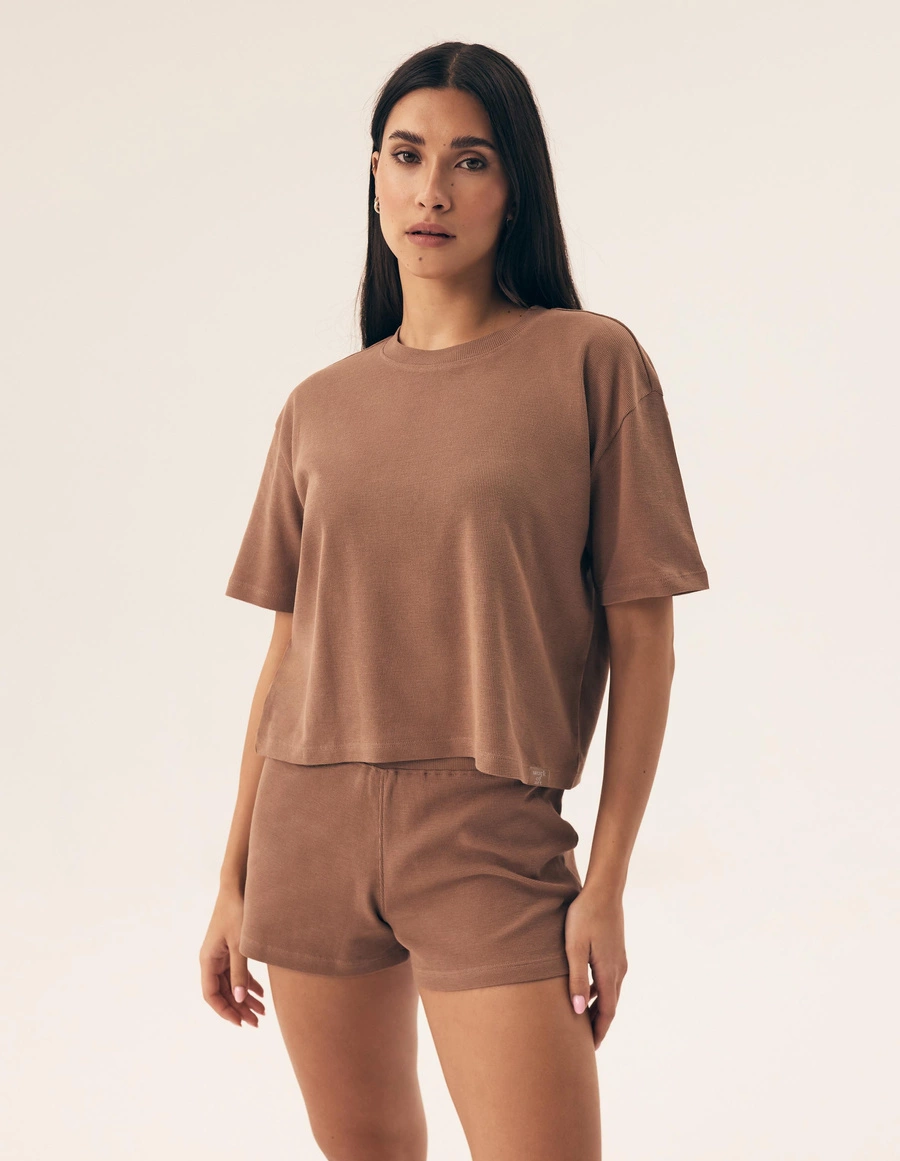 Stylowy i subtelny design kompletu Nilsa w kolorze coffee podkreśla jego elegancję. Starannie wykończone szwy oraz dbałość o detale świadczą o wysokiej jakości wykonania. Krój piżamy jest nowoczesny i zapewnia swobodę ruchów, a jednocześnie prezentuje się stylowo.