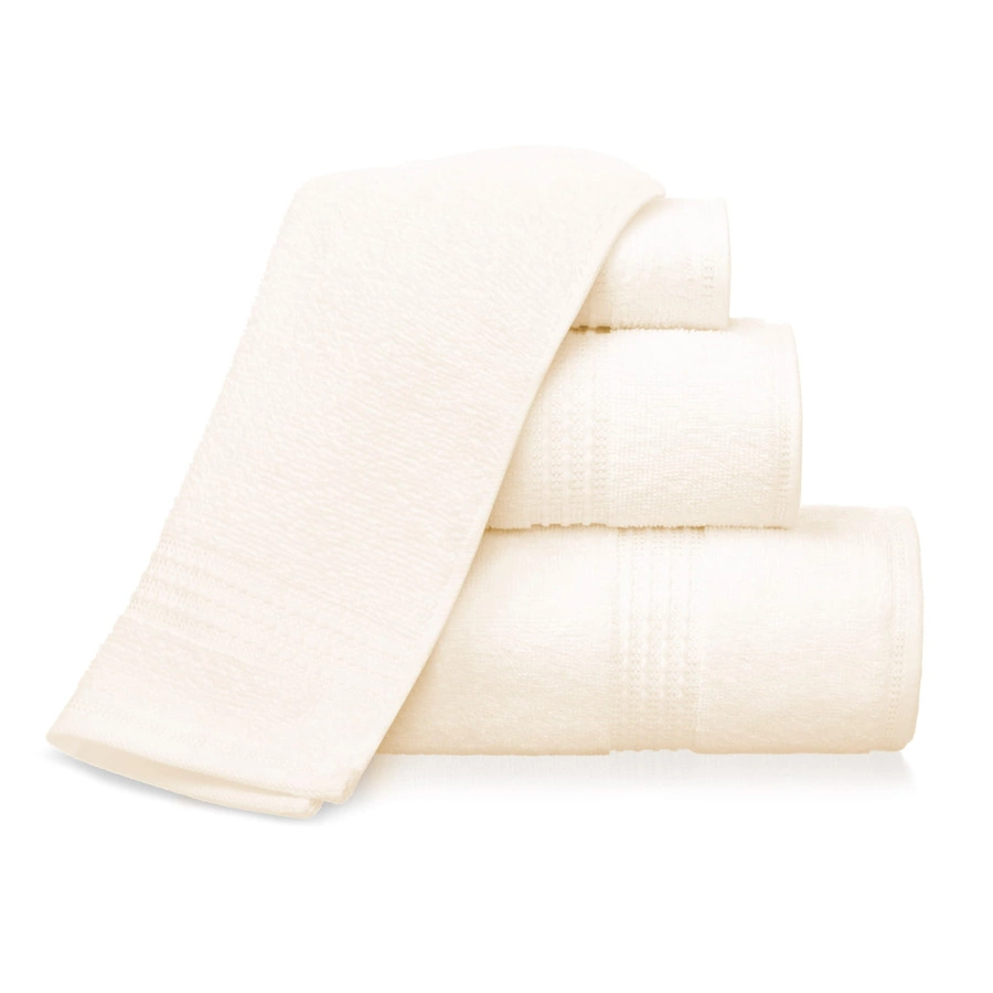 Kremowy gruby ręcznik z bordiurą Spod Igły i Nitki – idealny do personalizacji