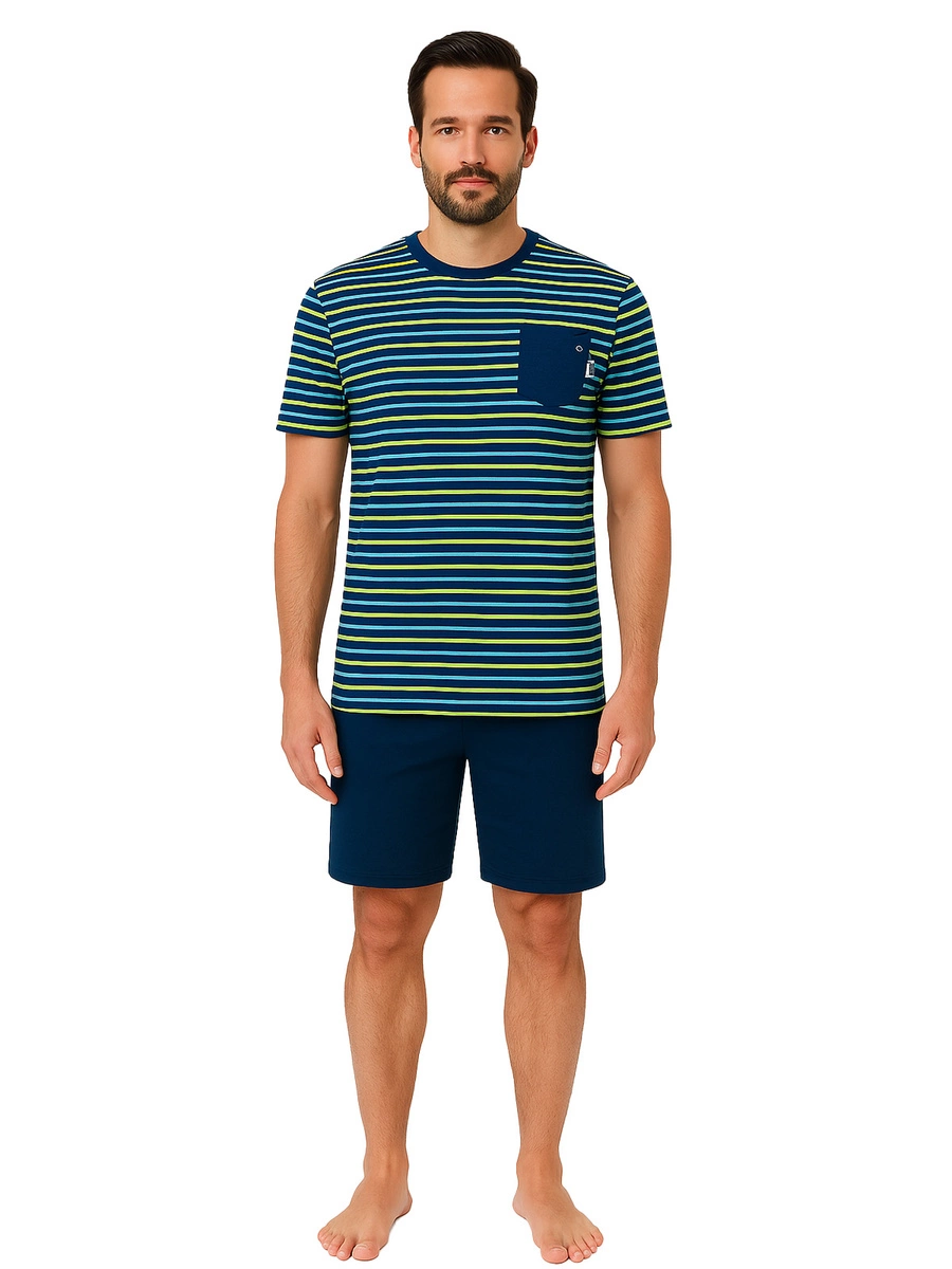 Modna piżama męska beMen 100% bawełna, krótkie rękawy i spodenki – wygoda w domu