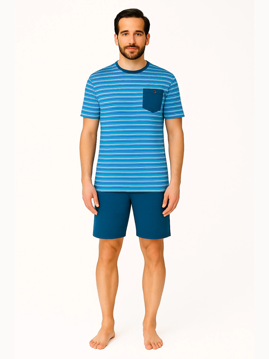 Modna piżama męska beMen 100% bawełna, krótkie rękawy i spodenki – wygoda w domu