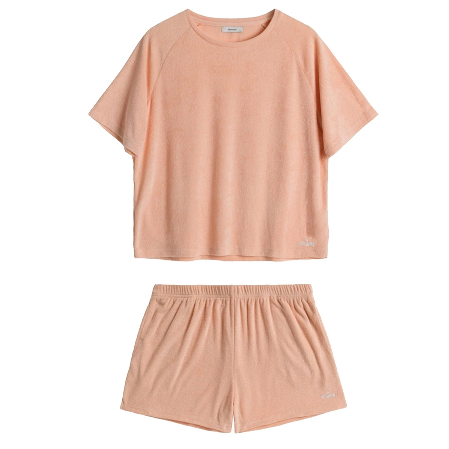 Odkryj nasz komplet damski Frotte w subtelnym odcieniu brzoskwini od Atlantic, który idealnie łączy w sobie styl i wygodę. Zestaw składa się z luźnej koszulki i wygodnych szortów, tworząc doskonałą odzież do noszenia w domu, a także funkcjonalną piżamę.