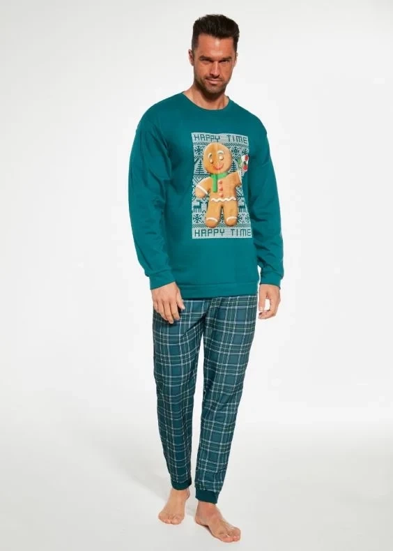 Niezwykle wygodna piżama z długim rękawem i długimi spodniami, tworzy idealne zestawienie na jesień i zimę. jest to komfortowa piżama męska ze ściągaczem. Piżama utrzymana w modnej, męskiej kolorystyce. Góra piżamy z ekstrawaganckim nadrukiem. Spodnie kolorystycznie nawiązują do góry piżamy. Komplet piżamowy jest bardzo miły w dotyku. Piżama męska wykonana z naturalnej dzianiny, która pozwala skórze oddychać. Piżama idealna na prezent.