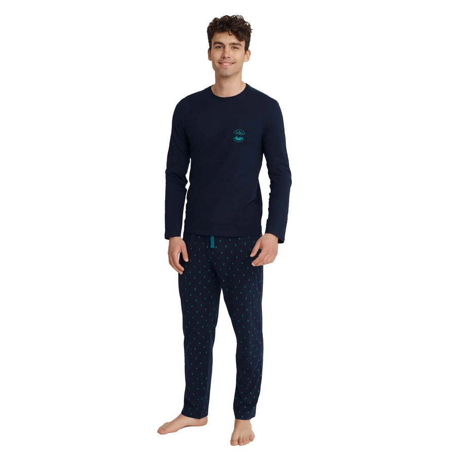 Wyróżnia się miękką dzianiną bawełnianą, która zapewnia komfort na najwyższym poziomie, oraz praktycznym zastosowaniem na co dzień. Piżama świetnie sprawdza się zarówno jako strój nocny, jak i wygodna odzież domowa. Dzięki długim rękawom i spodniom, oferuje ochronę przed chłodem, co czyni ją idealnym wyborem na spokojne wieczory w domowym zaciszu.