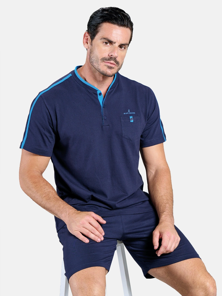 Piżama Męska na Krótki Rękaw Art. 141820 Granatowa Navigare