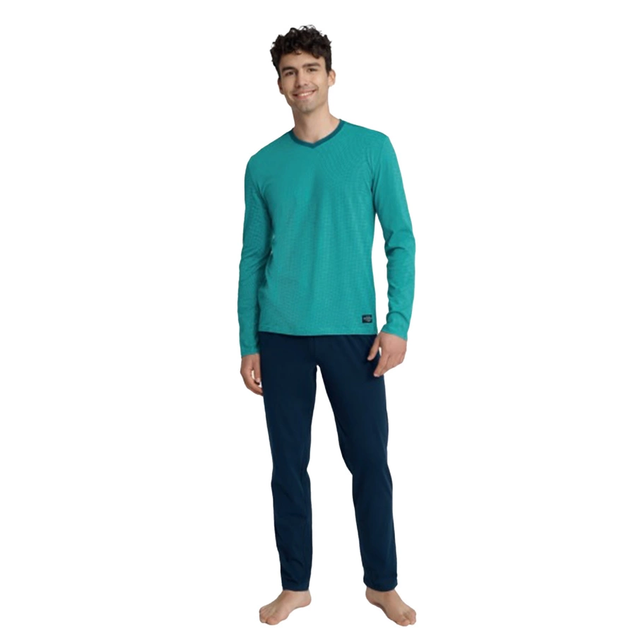Odkryj komfort i styl w domowym zaciszu z piżamą męską Udon od renomowanego producenta Henderson. Ta wielokolorowa piżama z bawełny jest dedykowana mężczyznom, którzy cenią sobie wygodę i funkcjonalność podczas chłodniejszych wieczorów. Idealnie sprawdzi się jako element jesienno-zimowej garderoby.