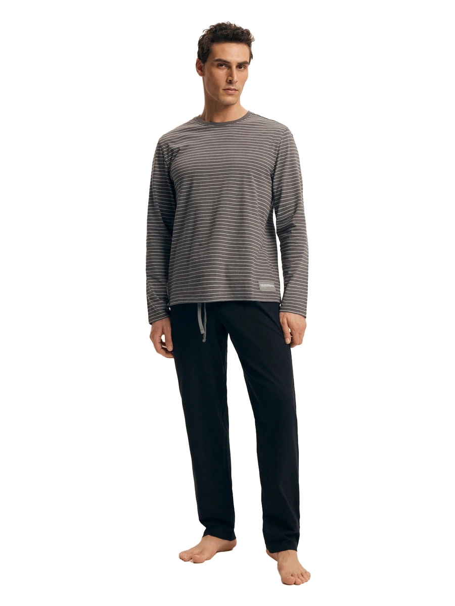 Piżama męska Henderson – długi rękaw, długa nogawka, wiązanie w pasie