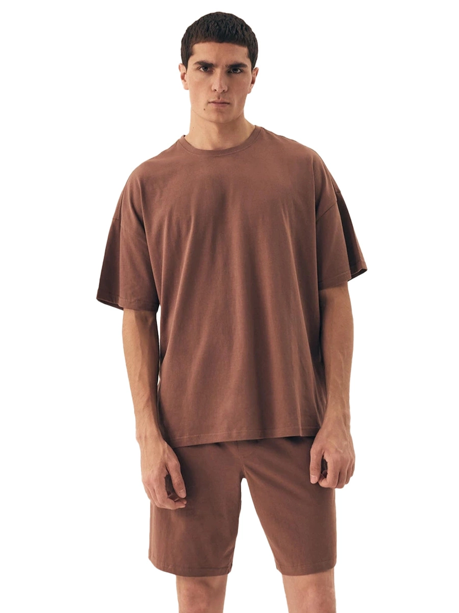 Koszulka z krótkim rękawem i okrągłym dekoltem gwarantuje swobodę ruchów, a spodenki z krótką nogawką i wiązaniem w pasie umożliwiają idealne dopasowanie do sylwetki. To praktyczny, a zarazem stylowy wybór na lato.