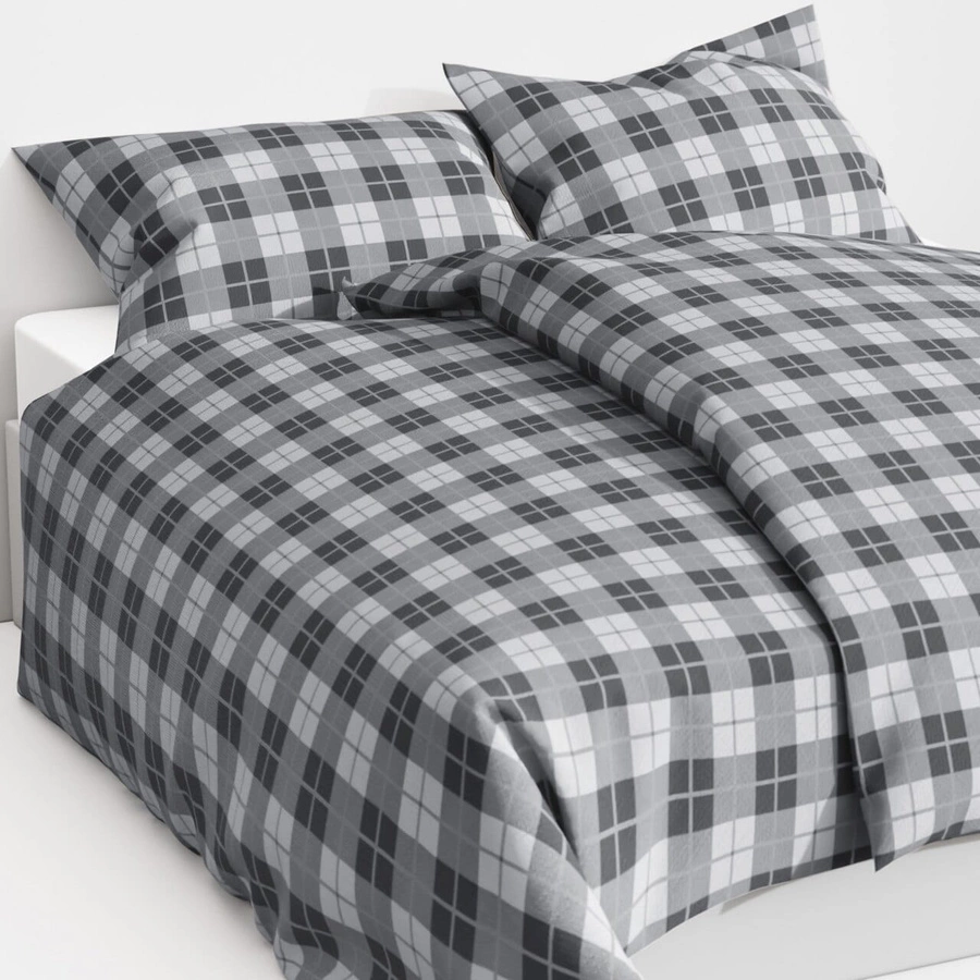 POŚCIEL BAWEŁNA KRATA SZARA