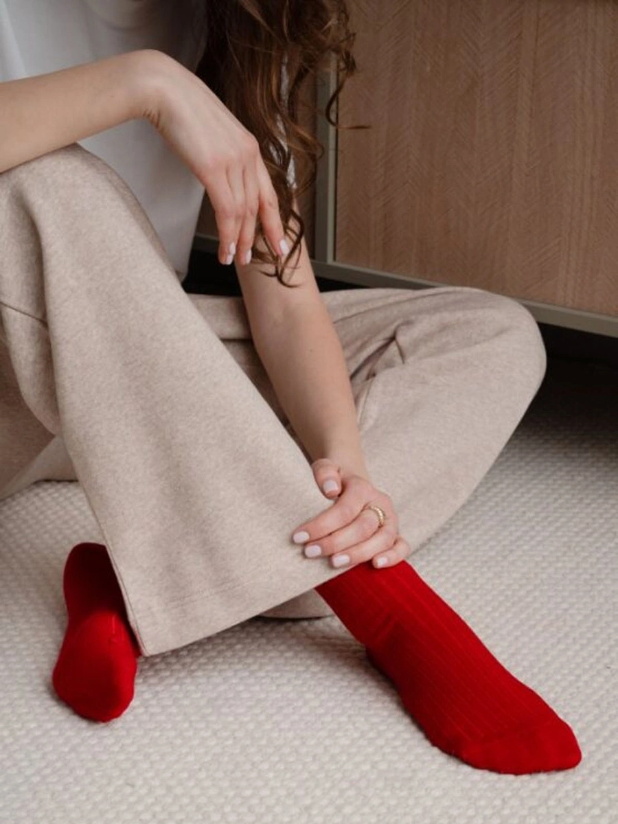 Skarpetki bezuciskowe z wełny merynosów brudny czerwony