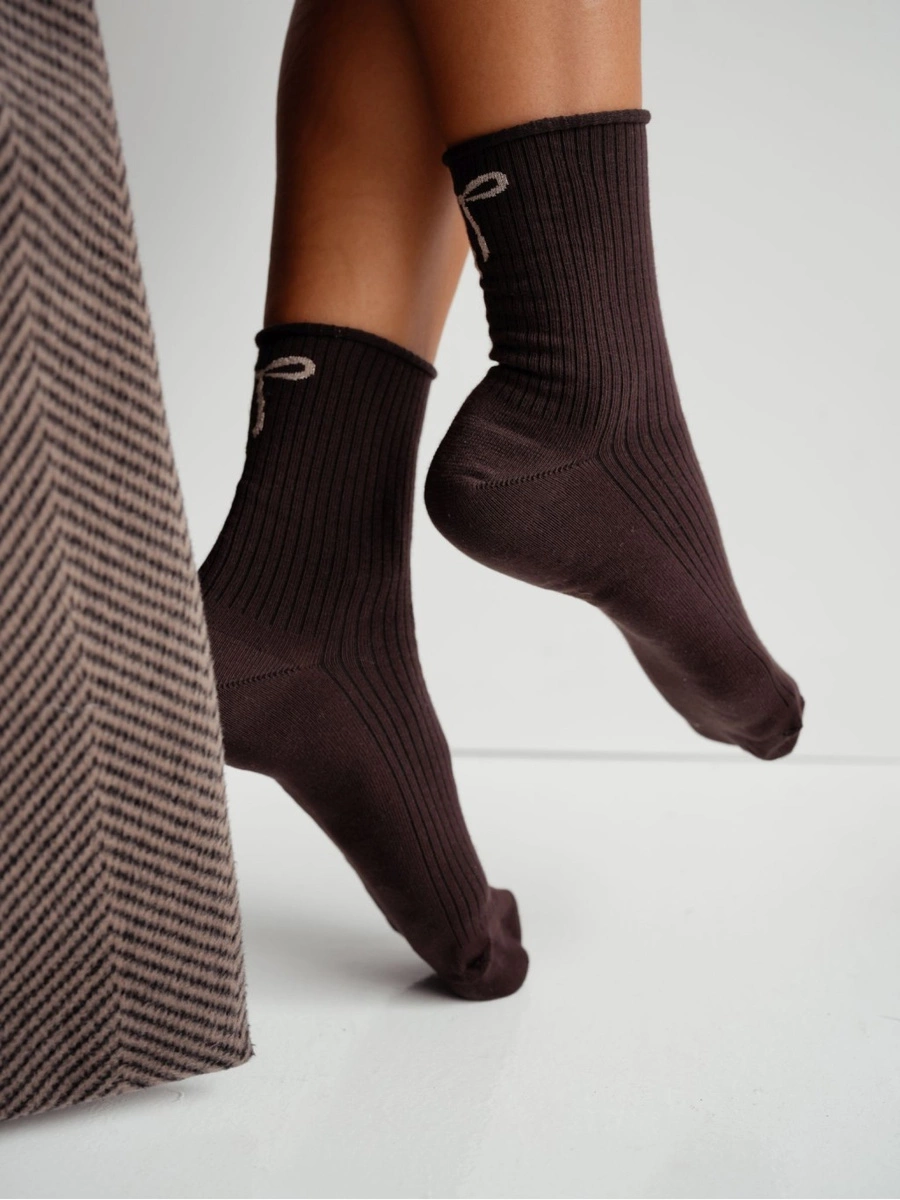 Skarpetki damskie bezuciskowe w prążek z kokardką 0200