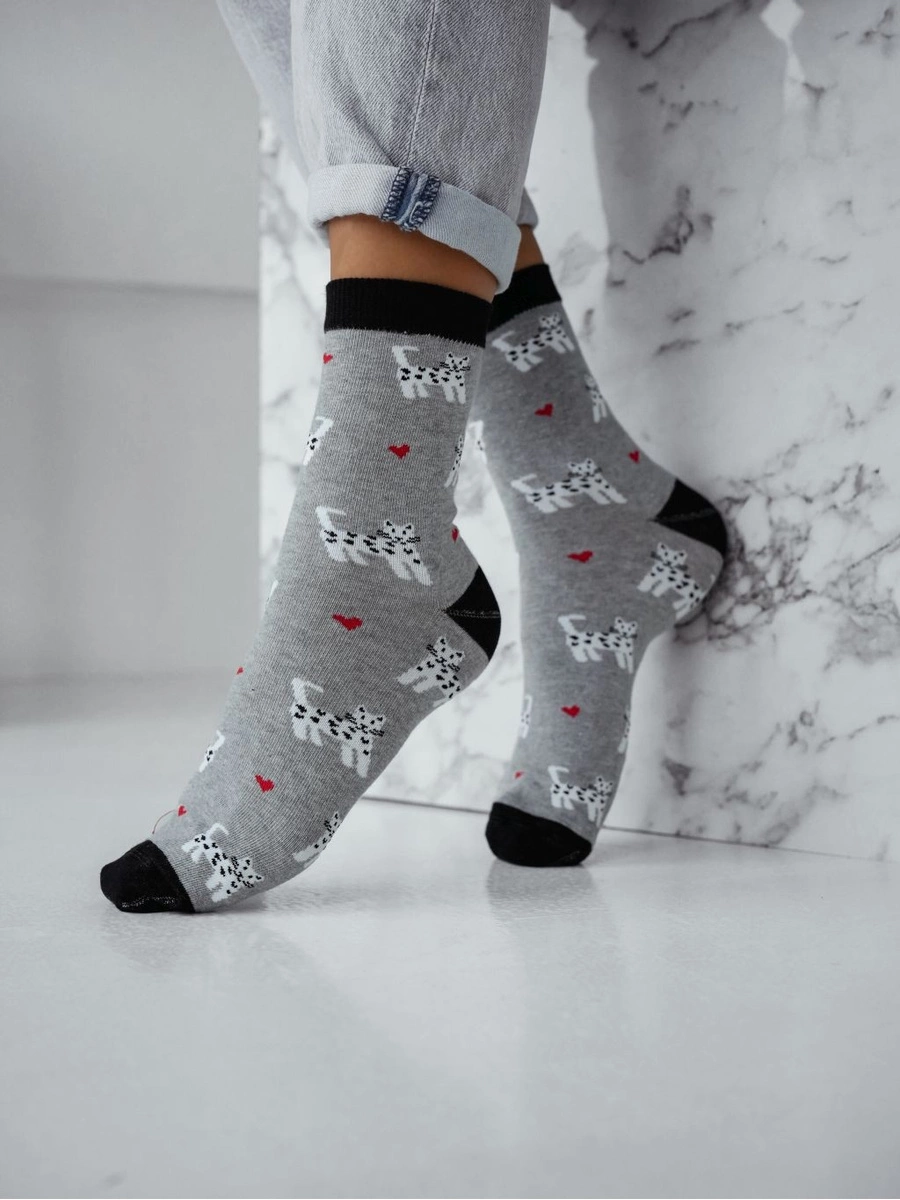 Skarpetki damskie Małe kotki i serduszka 0200.196, Kolor Ecru, Rozmiar 37-41