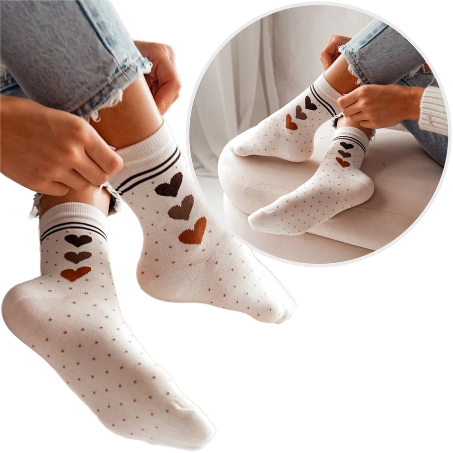Dostępne w eleganckim beżowym kolorze oraz wzorach z sercami, te skarpetki są doskonałym wyborem na każdą okazję. Niezależnie od tego, czy szukasz prezentu dla bliskiej osoby, czy chcesz uzupełnić swoją garderobę o stylowy dodatek, nasze skarpetki spełnią Twoje oczekiwania. To drobny detal, który wprowadza dużą różnicę w codziennym komforcie.