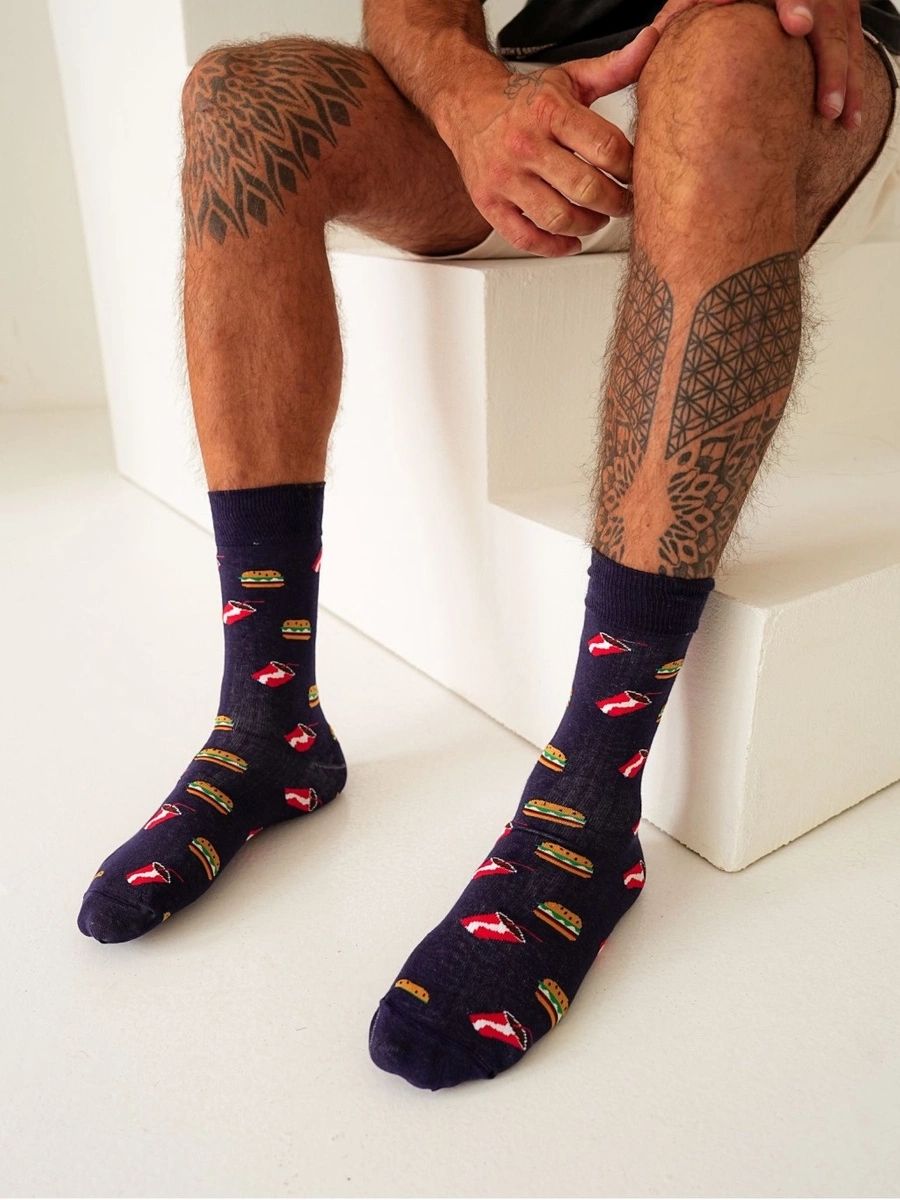 Niepowtarzalny design skarpet AVANGARD 125 sprawia, że doskonale komponują się zarówno z eleganckimi, jak i casualowymi stylizacjami. Nowoczesny styl i dominujący wzór dodają charakteru każdej kreacji, co czyni je nie tylko praktycznym, ale także modnym dodatkiem.