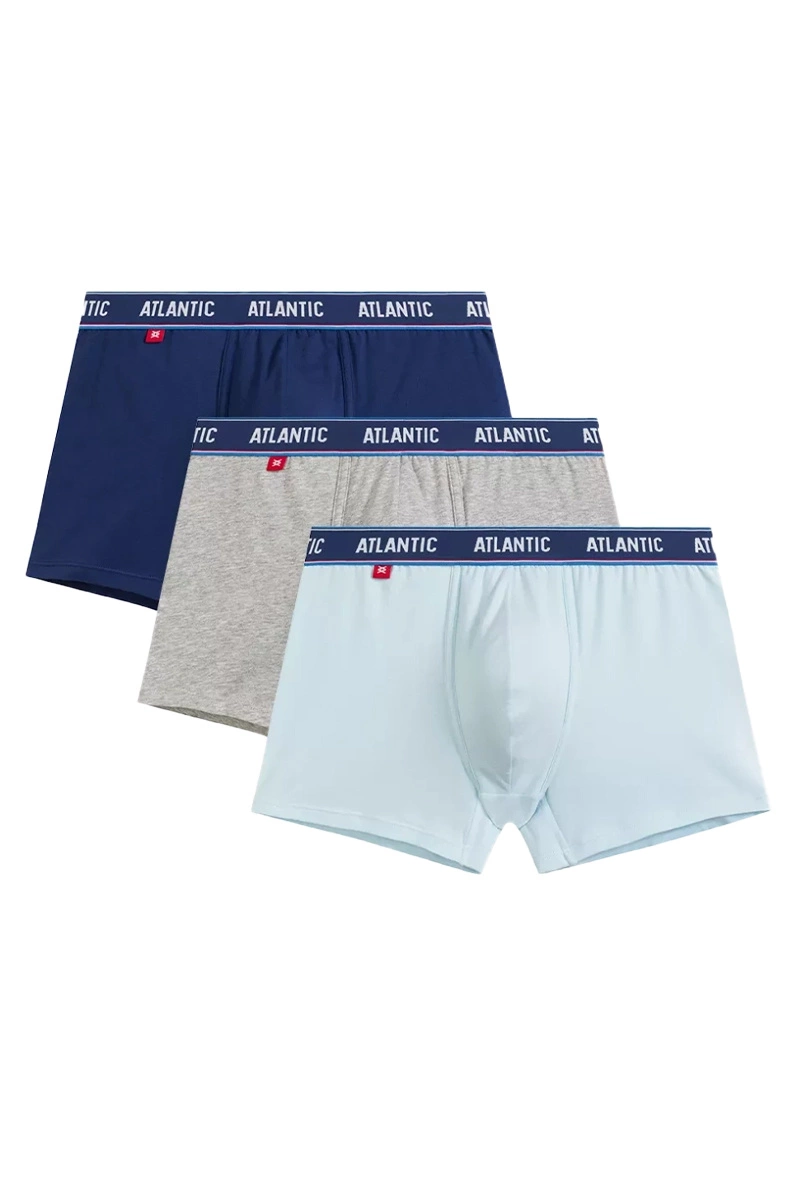 Szare i niebieskie sportowe bokserki męskie 3-pak Atlantic – idealne dopasowanie i wygoda.