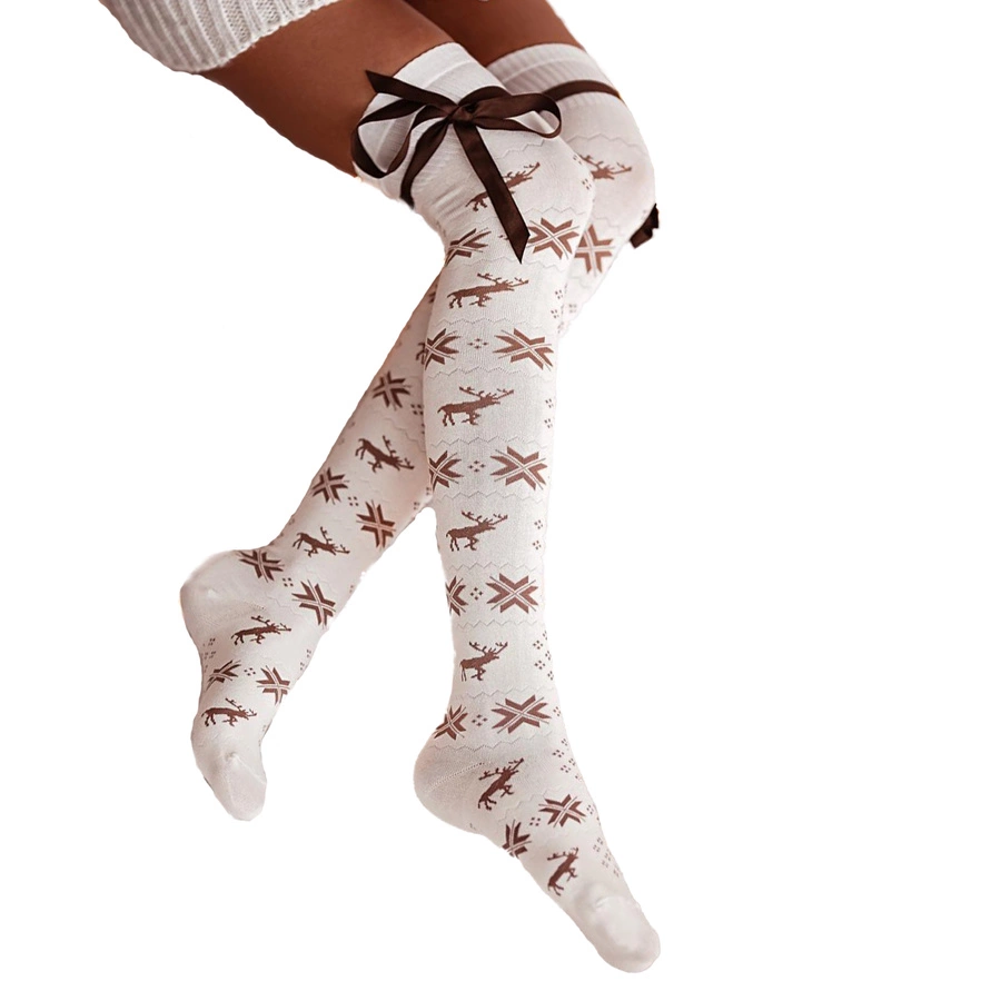 Zakolanówki Damskie Świąteczne ze Wstążką