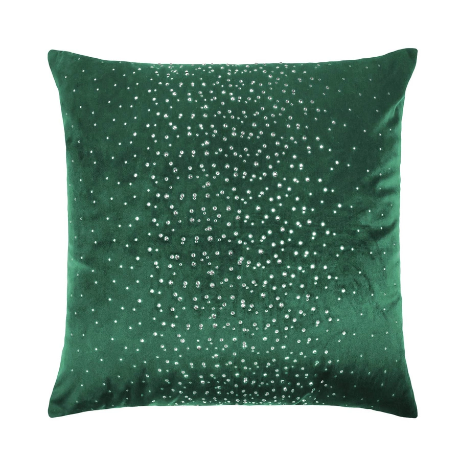 Zielona lśniąca poszewka dekoracyjna 40x40 z kryształkami Spod Igły i Nitki – elegancja wnętrza