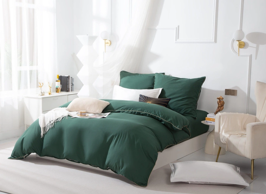 Zielona pościel z mikrofibry z złotą lamówką 3-częściowa Spod Igły i Nitki – elegancja i komfort