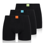 Czarne klasyczne bokserki męskie 3 sztuki z kolorową naszywką Moraj – codzienny komfort