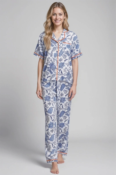 Niebieska florystyczna piżama damska 100% wiskoza Atrani Sorbetto – komfort i styl.